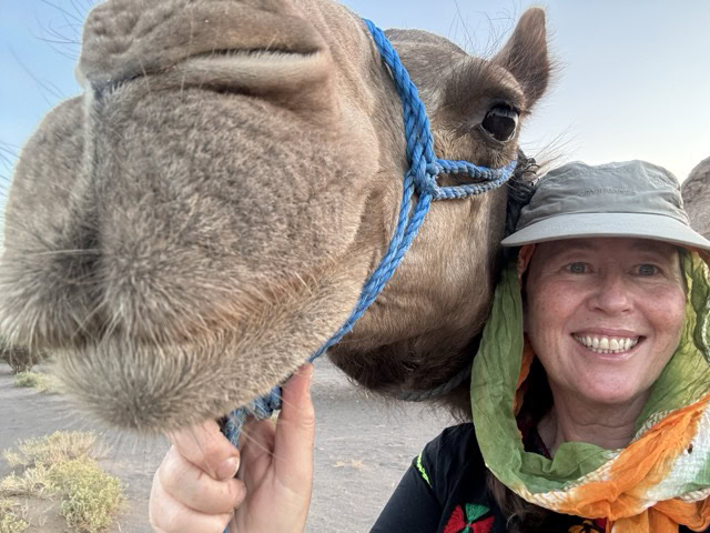 Alice: Okay, you know, honestly, Mar, my life is, I love my life, as you can see, but, you know, I’m on my own. I have to create everything from me. I create the trips, I create that, like everything has to come from me, which I love as well, because I’m quite egotistic. However, you know, that also means that the work. I started thinking about Saudi when I was in COVID. I was going to do originally Jerusalem to Mecca. And in fact, I walked the Jordan Trail in the middle to do part of that journey. But then all sorts of things happened. I was going to walk the Palestinian Heritage Trail and then October the 8th happened and then Israel slaughtered 70,000 Gazans. So, you know, that was not possible. And then as I was working with Saudi Arabia, I began to realize how difficult this part of the journey was going to be just to find anyone to do it. Because this is all very new. Well, in fact, I hope that no one else in the world has ever done it in the modern kingdom of Saudi Arabia. finding people to work with was incredibly difficult. And then once I found them, everything started to really happen. the two things that were most difficult about planning the Saudi expedition were getting sponsorship. and finding the right people to work with. And if you read any of my blogs, I have all the details of who those people are. mean, Khaled Al-Rabiah from Mad Adventures was my logistics manager. Alan Morrissey did all my route planning and navigation. So those were my two absolutely key people. And then Shaya ended up walking with me, which was amazing. And then for sponsorship, I had the Royal Commission for Al-Ula. I had Gym Nation and I had Saudi Tourism Authority. And Just to put this, just so you know really how this works, I knew that I would have to cash flow this adventure and that I’d have to pay for it upfront. So I sold my flat in London and I used that money to cash flow the adventure and to also pay for a large chunk of it because I couldn’t get enough sponsorship to pay for it because I had five men for 112 days and two camels and three vehicles and all the food and all the water. I mean it was hugely expensive. But I backed myself and that’s another thing I would say to everybody especially, back yourself. Back yourself. If you believe in yourself, put your money or your efforts or your power where your mouth is and just do it.